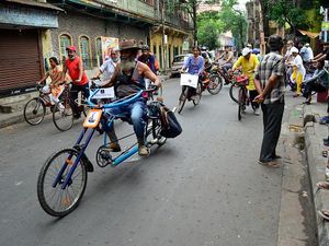 Hari Sepeda Sedunia diperingati pada 3 Juni setiap tahunnya. Momen ini dimanfaatkan warga India di Kalkuta untuk bersepeda bersama di jalanan. Santai...