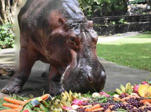 Baru-baru ini seekor hippo di kebun binatang Thailand merayakan ulang tahunnya yang ke-55. Seisi kebun binatang pun merayakannya.