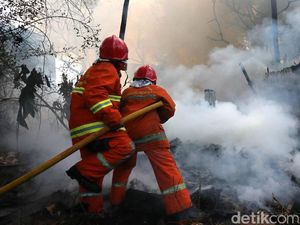 Sejumlah petugas damkar tengah berkumpul di kawasan Masjid Istiqlal, Jakarta. Ya, mereka melakukan aksi bersih-bersih di hari jadi Damkar yang ke-100.