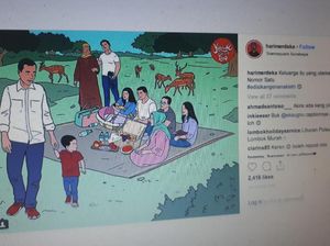 Momen Jokowi dan Ma'ruf Amin yang menjadi nomor urut satu tergambar dalam ilustrasi ini. Karya seni yang diupload oleh akun @karyaadalahdoa.