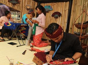 Sejumlah stan pengrajin seperti kipas Bali, tenun Maumere, dan batik Lasem juga menarik perhatian Lagarde.