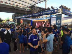 Sepanjang pekan ini, Clarke Quay tak cuma jadi tempat nongkrong di malam hari. Lokasi bekas pelabuhan itu juga mempunyai spot bagi fans Chelsea dan Inter Milan.