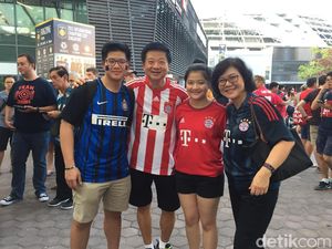 Tak cuma fans Inter Milan, Bayern Munich, dan Chelsea yang meramaikan National Stadium, Singapura. Ada juga yang datang sekadar untuk kumpul keluarga.