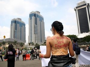 Aliansi Simpul Puan bersama sejumlah aktivis berunjuk rasa memperingati Hari Perempuan Internasional 2024 di depan Gedung Sate, Bandung, Jumat (8/3/2024).