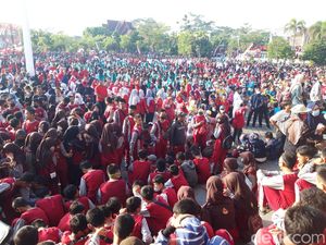 Peresmian detikSulsel di Lapangan Parkir TSM Makassar, Minggu (31/7/2022) berlangsung meriah. Sekitar 10.000 peserta ikut dalam jalan sehat dan zumba bersama.