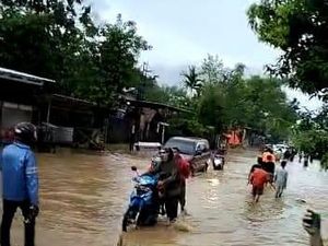 Banjir setinggi lutut orang dewasa menggenangi Jalan Nasional Ponorogo-Wonogiri. Akibatnya, ekor kemacetan kendaraan mencapai 3 kilometer.