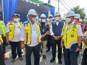 Menteri PUPR Basoeki Hadimoeljono meninjau kesiapan jalur mudik Lamongan. Basoeki menyebut, ruas jalan poros nasional Lamongan-Gresik hampir siap dibuka.