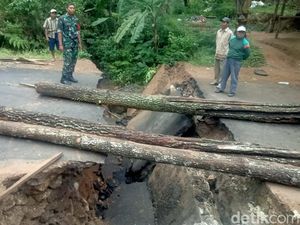 Sebuah jembatan penghubung antarkampung di Trenggalek putus total diterjang banjir. Akibatnya akses alternatif warga terganggu.