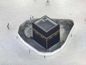 Ka'bah ramai diperbincangkan. Usai area tawaf tampak kosong. Pengosongan area ini dilakukan dalam rangka pembersihan dan sterilisasi guna mencegah virus corona.
