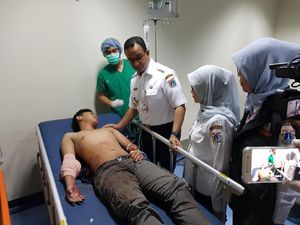 Anies Baswedan mendatangi RSUD Tarakan. Dia menjenguk orang-orang yang terluka akibat ricuh demonstrasi di sekitar kawasan Tanah Abang, Jakarta Pusat.
