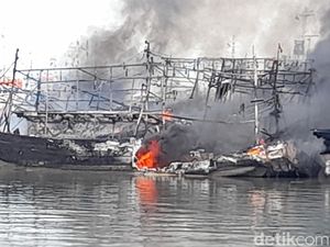 Simak fakta-fakta terkini terkait peristiwa kebakaran puluhan kapal di Pelabuhan Jongor, Tegalsari, Tegal, Jawa Tengah. Kondisi terkini api mulai mereda.