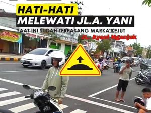 Polisi tidur di Jalan Terusan Dieng, Kota Malang menuai kritik netizen. Keberadaan polisi tidur itu membuat pengendara motor mengalami kecelakaan.