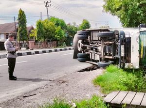 Seorang buruh tewas tertimpa tegel saat truk bahan bangunan terbalik di Maros, Sulawesi Selatan. Dua orang lainnya luka-luka.