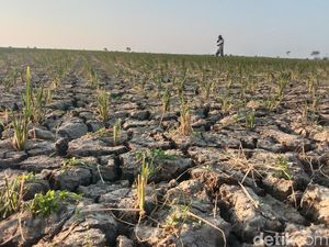 Kekeringan membuat kerbau susah untuk mencari makan di Lombok Tengah, NTB. Hewan-hewan peliharaan itu terpaksa mencari rumput di sawah yang mengering.