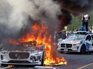 Unjuk rasa di Los Angeles berakhir ricuh. Mobil-mobil dibakar, kerumunan disemprot gas air mata.