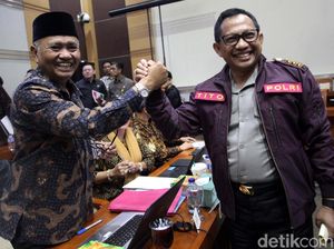 Kapolri Tito Karnavian dan Ketua KPK Agus Rahardjo menghadiri Raker dengan Komisi III DPR membahas Densus Tipikor. Tito dan Agus sempat melakukan salam komando.