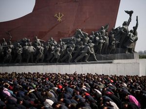 Hari lahir mendiang Kim Il-Sung, pendiri Korut, diperingati besar-besaran. Warga Korut ramai-ramai membungkuk ke patung Kim Il-Sung untuk menghormatinya.
