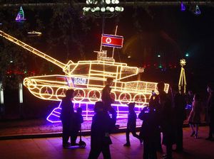 Festival cahaya digelar di Korea Utara. Festival ini digelar rangka memperingati 110 tahun kelahiran mendiang Kim Il Sung, pendiri Korea Utara.