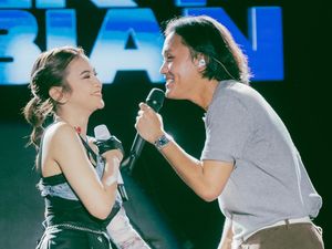 Rizky Febian menyampaikan pesan manis untuk Mahalini di konser tunggal kekasihnya, Sabtu (14/10). Pesannya membuat para penggemar Mahalini, Mylinz, baper.