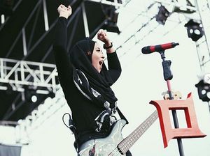 Gitaris grup musik 'Kotak' Swasti Sabdastantri atau akrab dipanggil Chua tampil berhijab saat manggung di Aceh. Berikut potretnya.