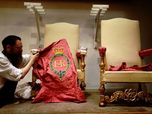 Kursi singgasana Raja Chales III mulai disiapkan jelang penobatan. Kursi ini sama seperti yang digunakan oleh kakeknya George VI ketika dinobatkan sebagai Raja.