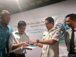 Wakil Gubernur DKI Jakarta Sandiaga Uno meresmikan Komunitas Jakarta Tersenyum (KJT) OK OCE Laku Pandai.