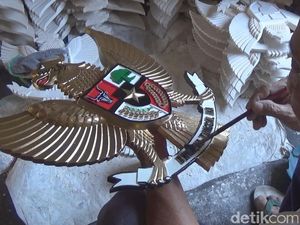 Pengrajin Garuda Pancasila di Jombang kebanjiran pesanan jelang peringatan HUT RI ke-73.