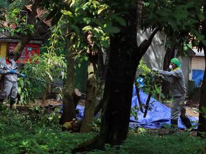 Pengangkutan limbah radioaktif di perumahan Batan Indah, Serpong, Tangerang Selatan, yang sempat terhenti dilanjutkan. Garis pembatas sudah terpasang.