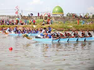 Keseruan Lomba Perahu Naga di Kalimas Surabaya, Peserta Basah Kuyup