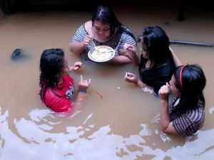 Basah Kuyup! 5 Orang Ini Tetap Asyik Makan Meskipun Banjir dan Hujan Deras