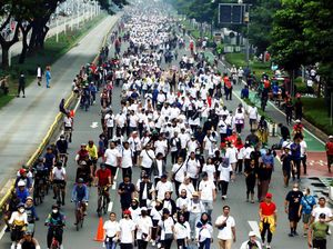 Mandiri Inhealth menggelar jalan sehat bersama di kawasan car free day, Jakarta, Minggu (9/10). Kegiatan ini untuk memperingati HUT ke-14 Mandiri Inhealth.