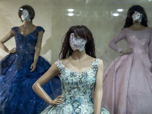 Ada yang berbeda dengan penampilan maneken di Kabul, Afghanistan. Di bawah kekuasaan Taliban, toko-toko pakaian wajib menutupi kepala dan wajah maneken.
