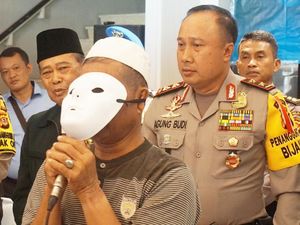 Uyu dihadirkan dalam rilis yang digelar di Mapolda Jabar. Menggunakan sarung dengan wajah ditutup topeng, Uyu blak-blakan merekayasa seolah korban penganiayaan.