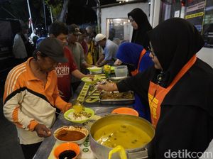Suasana Makan Gratis di Masjid Konsulat Pemuda Surabaya