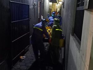 Seorang kakek ditemukan meninggal di kamar kosnya, Desa Medaeng, Waru, Sidoarjo. Evakuasi jenazah korban Sutrisno Winedi (65) dilakukan dengan protap Covid-19.