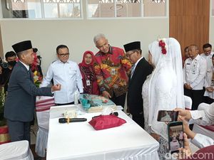 MenPAN-RB Abdullah Azwar Anas dan Gubernur Jateng Ganjar Pranowo menjadi saksi nikah salah satu warga Sragen di Mal Pelayanan Publik (MPP) di Kabupaten Sragen.