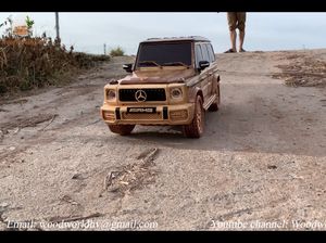 Seniman kayu anonim, membuat replika Mercy G Class dari kayu. Mobil mainan ini tidak hanya dibuatnya secara detail untuk pajangan, tapi dapat dimainkan.