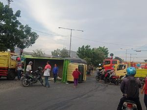 Mobil Damkar Terguling Saat Perjalanan Padamkan Kebakaran di Kediri