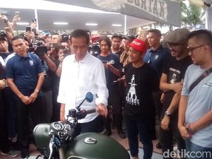 Jokowi sempat menengok motor bobber milik putranya, Gibran Rakabuming. Kata Jokowi, motor bergaya bobber itu bagus.