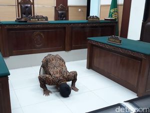Ihsan Hadi (30) yang semula bernama kentut begitu gembira dengan pergantian namanya. Usai mendengarkan putusan hakim, Ihsan pun sujud syukur.