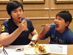 Tak satu meja, ini menu yang dilahap Sean, Nathania, dan Daud saat perayaan Imlek. Nathania dan Daud hanya melahap mie kuah instan dengan sajian khas Korea.