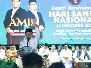 Puluhan ribu santri Pondok Pesantren Asrama Perguruan Islam Tegalrejo, Magelang mengikuti Hari Santri Nasional bersama Anies Baswedan-Muhaimin Iskandar (AMIN).
