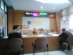 Antrean pembuatan e-KTP di Kantor Pelayanan Dinas Kependudukan dan Catatan Sipil Karawang membludak. Akibatnya kaca kantor pecah. Kok bisa?