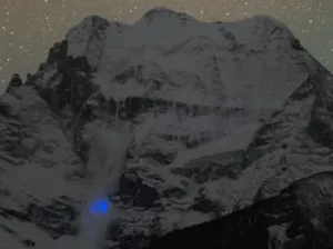 Astrofotografer Shengyu Li menangkap fenomena misterius berupa cahaya biru dari longsoran salju. Apakah itu?