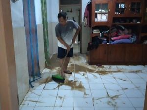 Banjir yang terjadi di Kecamatan Bayah, Lebak, Banten sudah surut. Warga mulai membersihkan lumpur hingga sampah yang terbawa banjir.