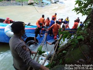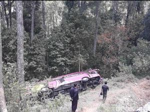 Bus Kramat Djati Terjun ke Jurang 20 Meter di Puncak Cipanas