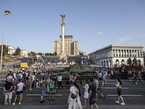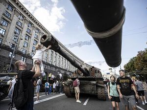 Ukraina sengaja memajang tank dan kendaraan tempur Rusia yang sudah hangus dan hancur. Hal itu dilakukan dalam rangka memperingati Hari Kemerdekaan Ukraina.