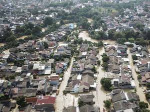 Banjir masih menggenangi salah satunya perumahan Villa Jatirasa, Jatiasih, Kota Bekasi. Titik banjir masih ada yang setinggi 160 cm.