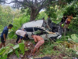 Mobil Daihatsu Luxio bernopol DK 1012 AAB yang dikendarai dua bule Rusia terjun ke jurang sedalam 20 meter di Buleleng. Ini kronologinya.