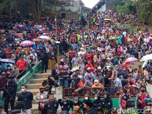 Para pengunjung memadati tradisi Saparan Yaaqawiyyu di Jatinom, Klaten. Mereka sempat berziarah ke makam Ki Ageng Gribig. Lalin pun dibuka tutup karena padat.